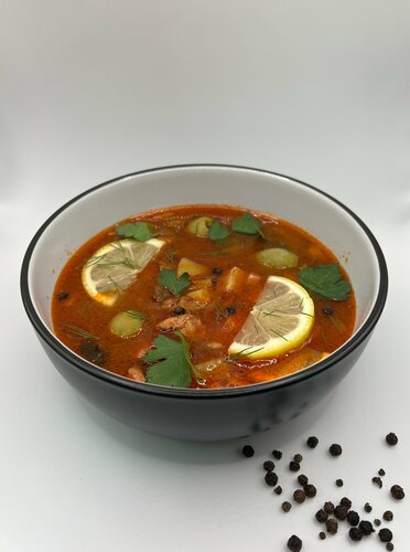Брали солянку, сосиску в тесте и пирожок с ветчиной и сыром — всё свежее и вкусное, без лишнего. Компот нормальный, как и должен быть.